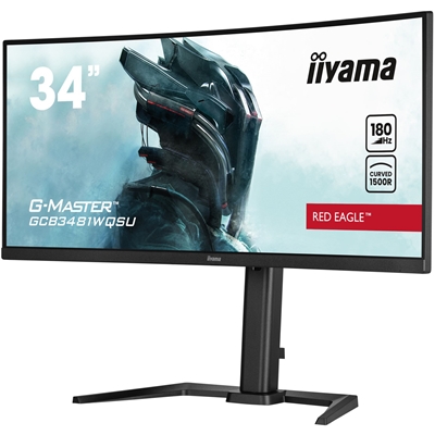 iiyama G-MASTER Red Eagle GCB3481WQSU-B1 34 inch Ultra-Wide Curved Monitor, 3440 x 1440, 0.3ms, HDMI, DisplayPort, USB Hub, Freesync, 180Hz, Speakers, Black, Internal PSU, Height Adjustable, VESA